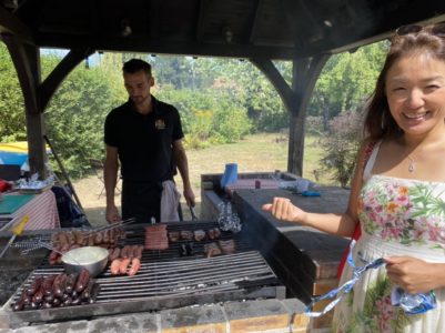 ランチは、クラブハウスのガーデンでバーベキュー。